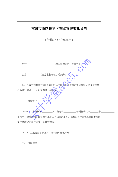 常州市市區住宅區物業管理委托合同(供物業委托管理用).doc