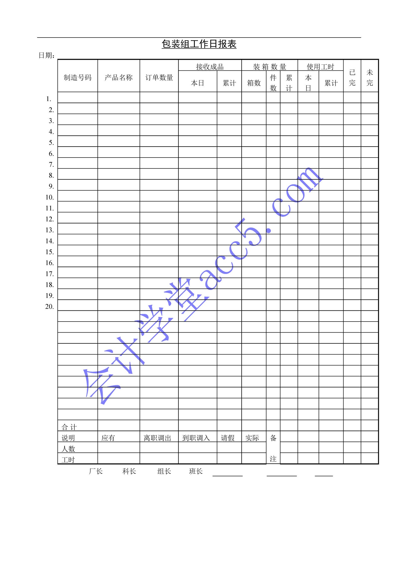 包裝組工作日?qǐng)?bào)表介紹: