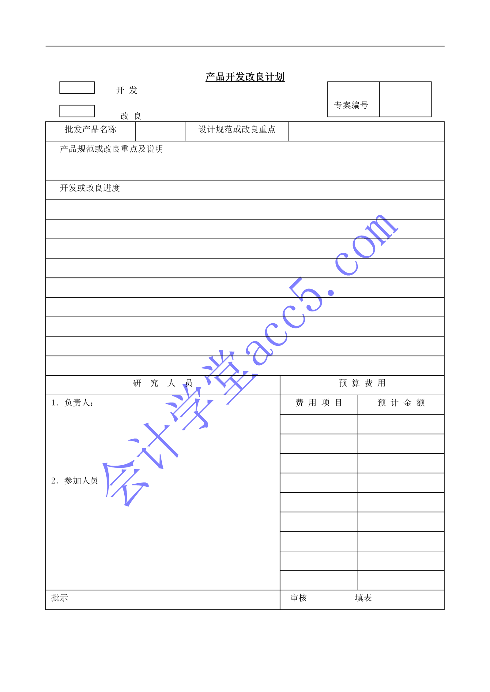 產(chǎn)品開發(fā)改良計(jì) 劃介紹: