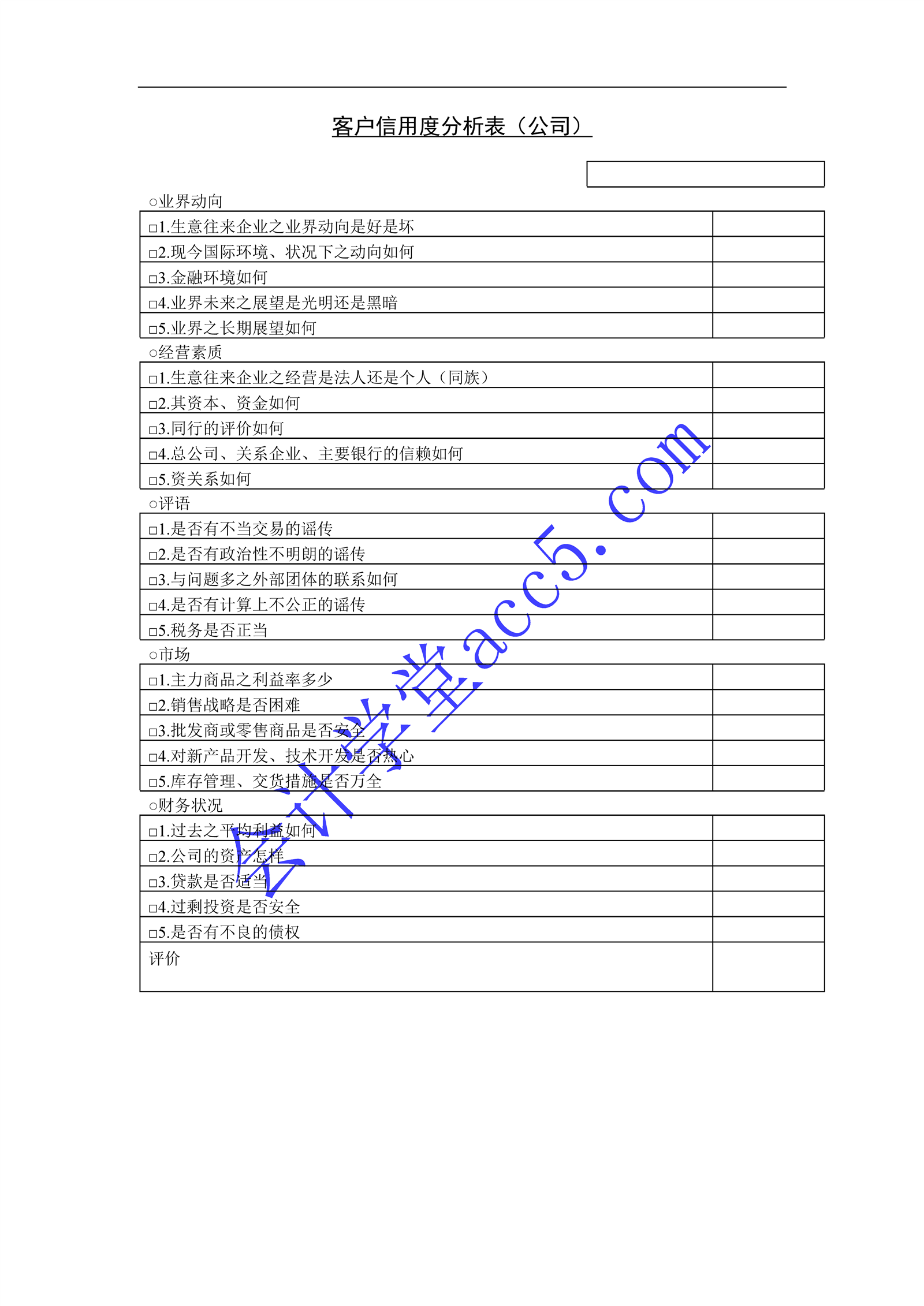 客戶信用度分析表(公司)介紹: