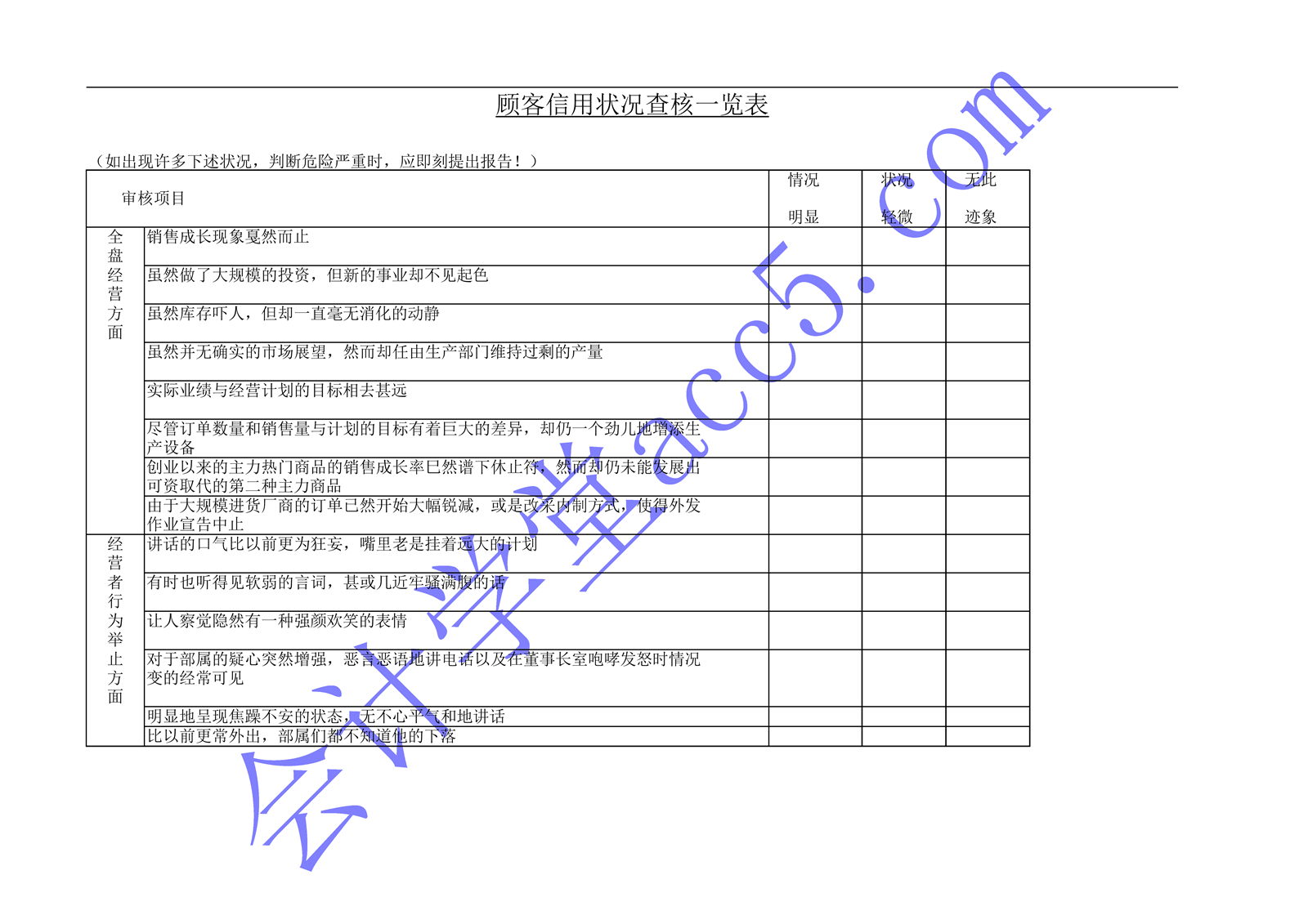 顧客信用狀況查核一覽表介紹: