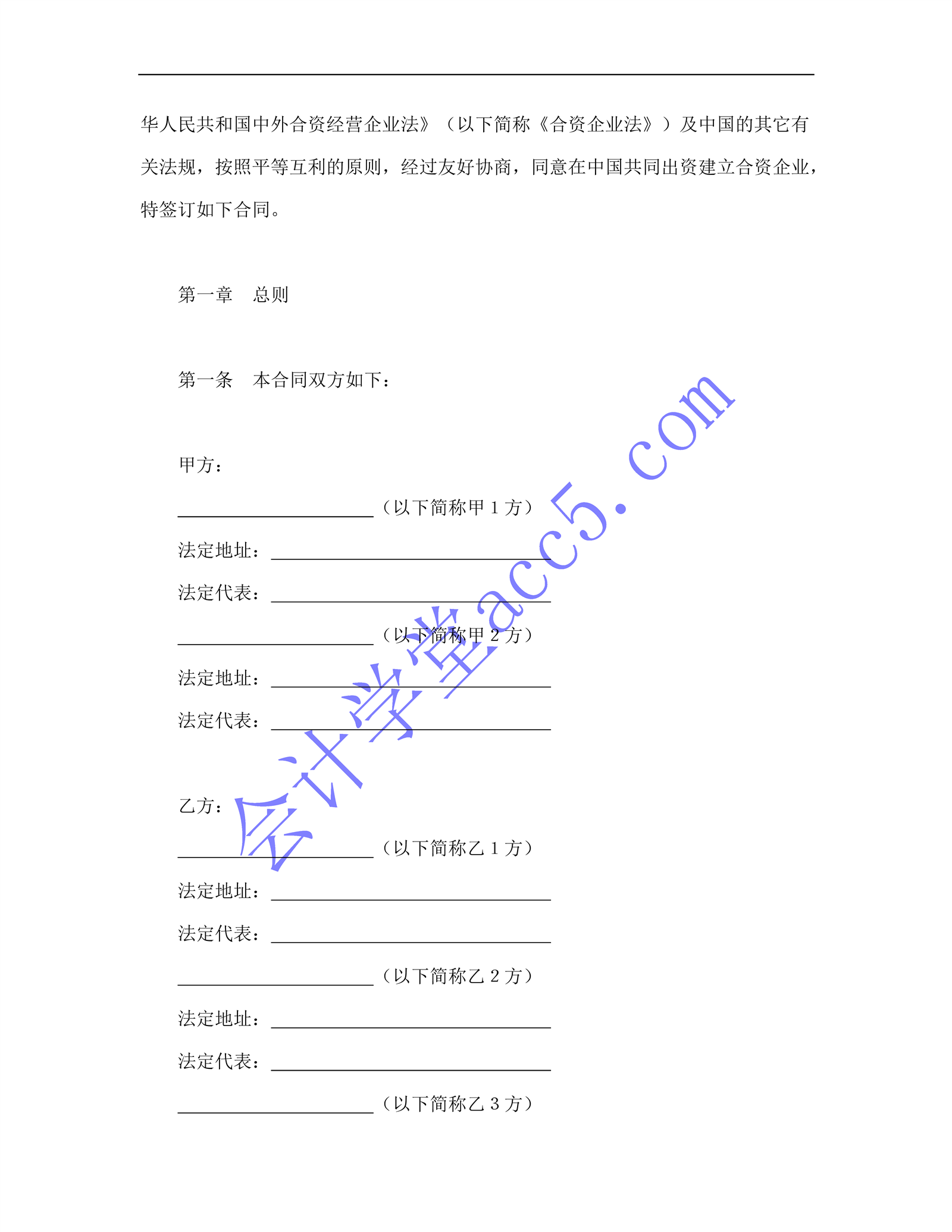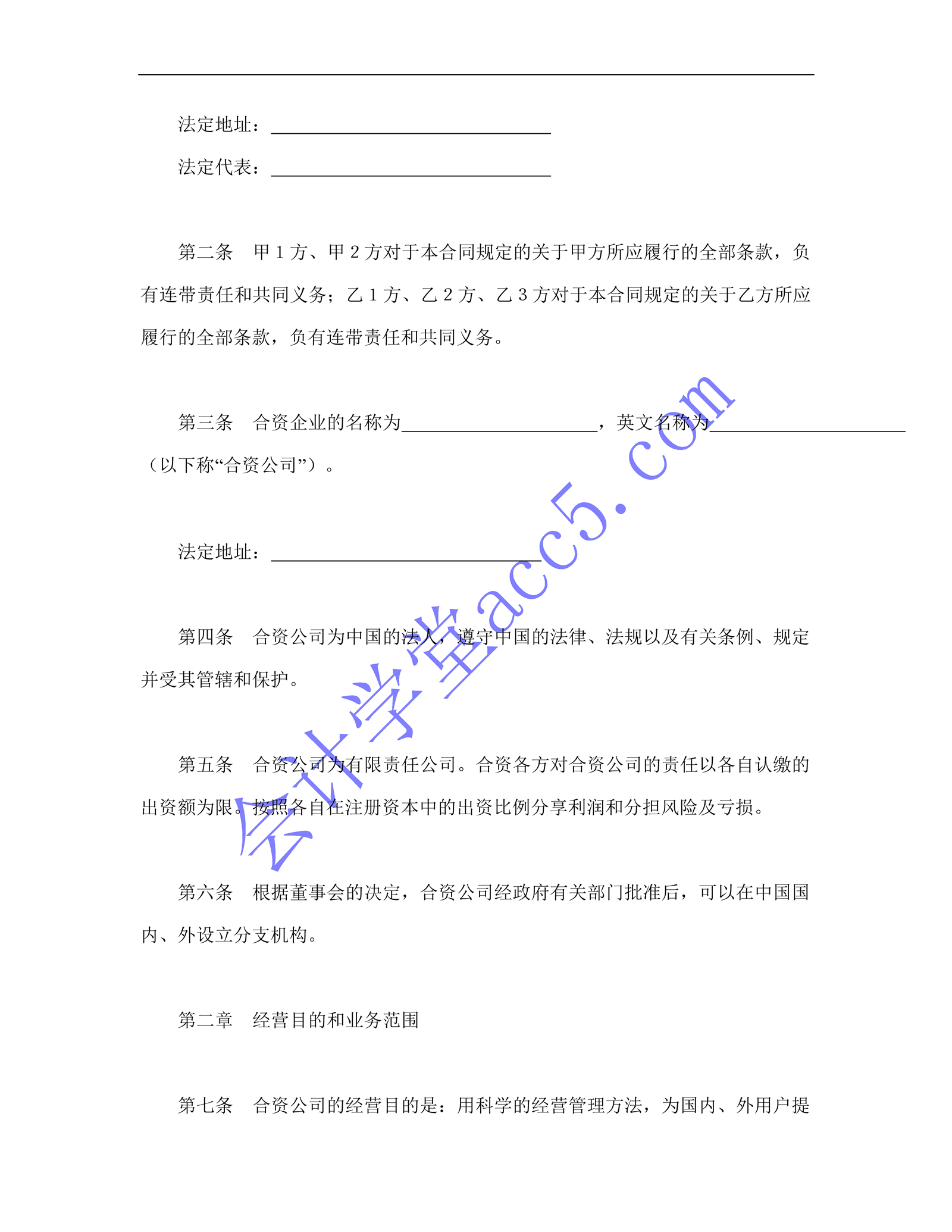設(shè)立中外合資經(jīng)營企業(yè)合同(金融2)介紹: