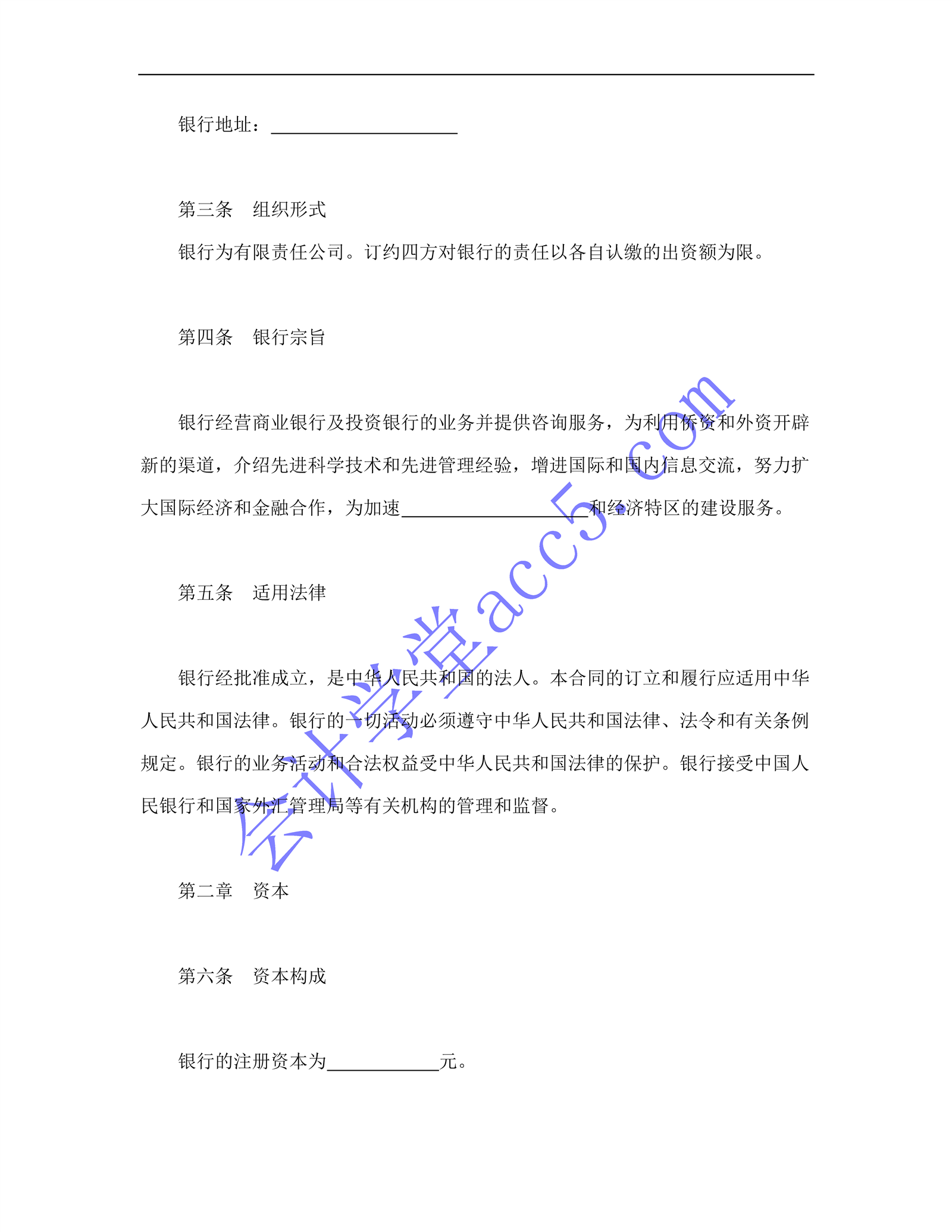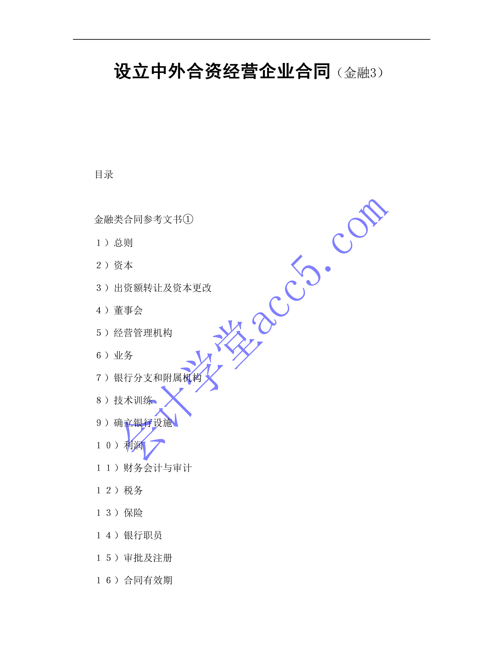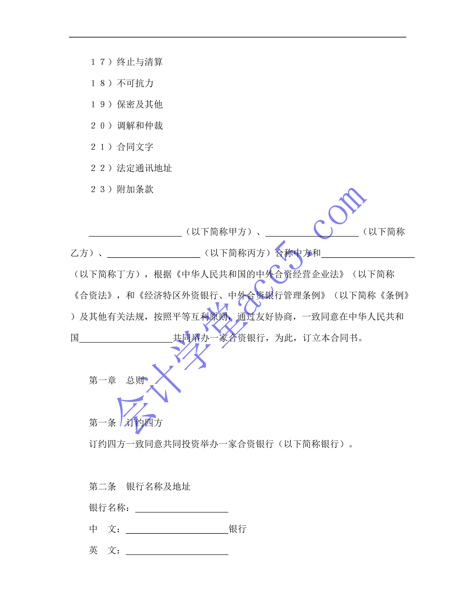 設立中外合資經營企業(yè)合同(金融3)介紹: