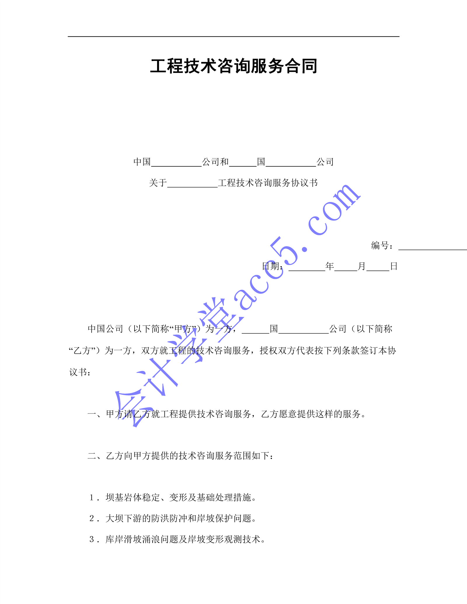 工程技術(shù)咨詢服務(wù)合同介紹: