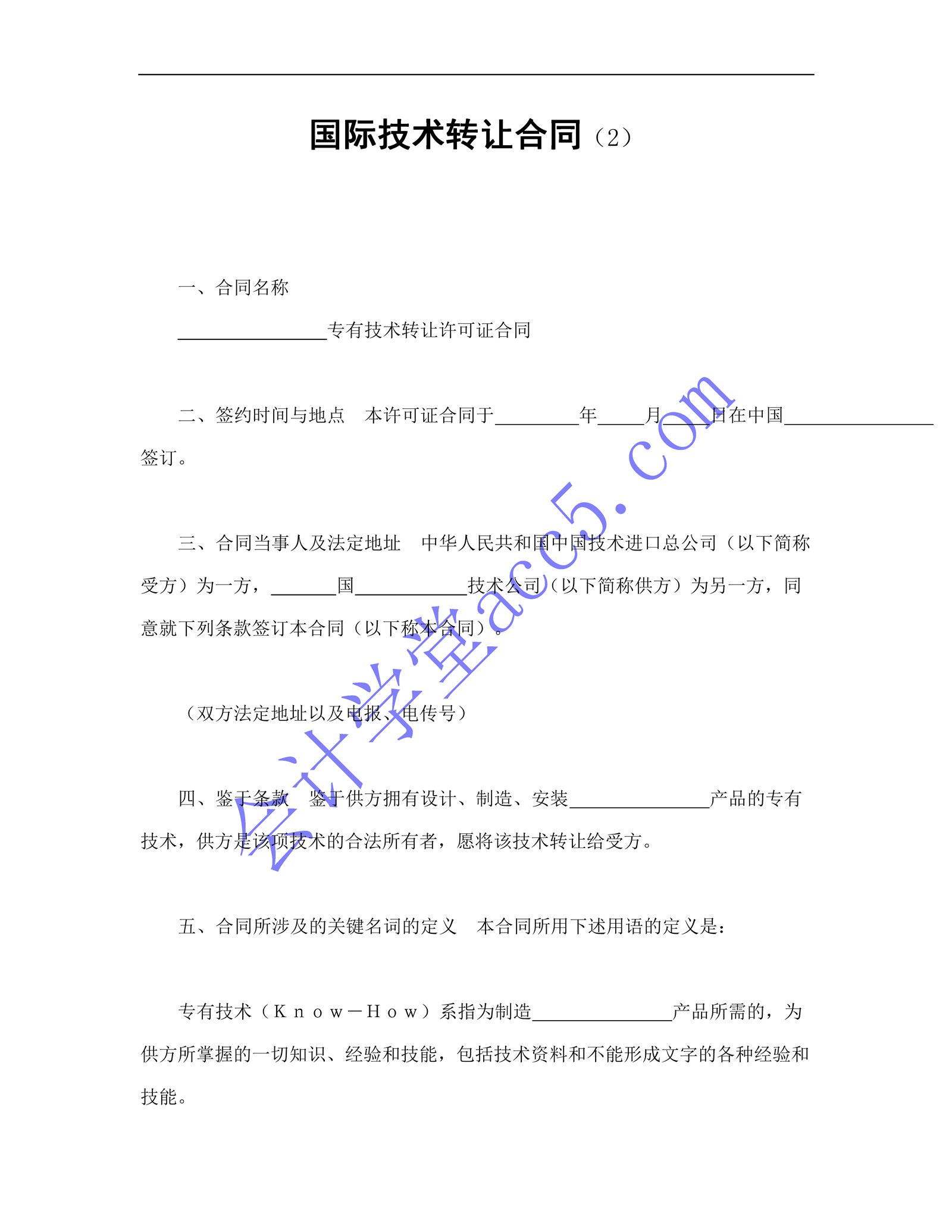 國際技術(shù)轉(zhuǎn)讓合同(2)介紹: