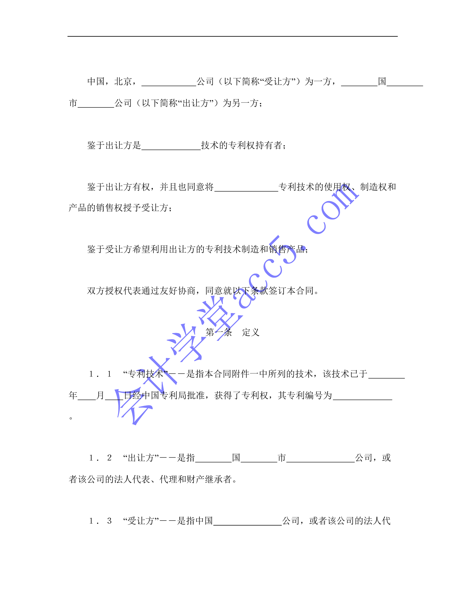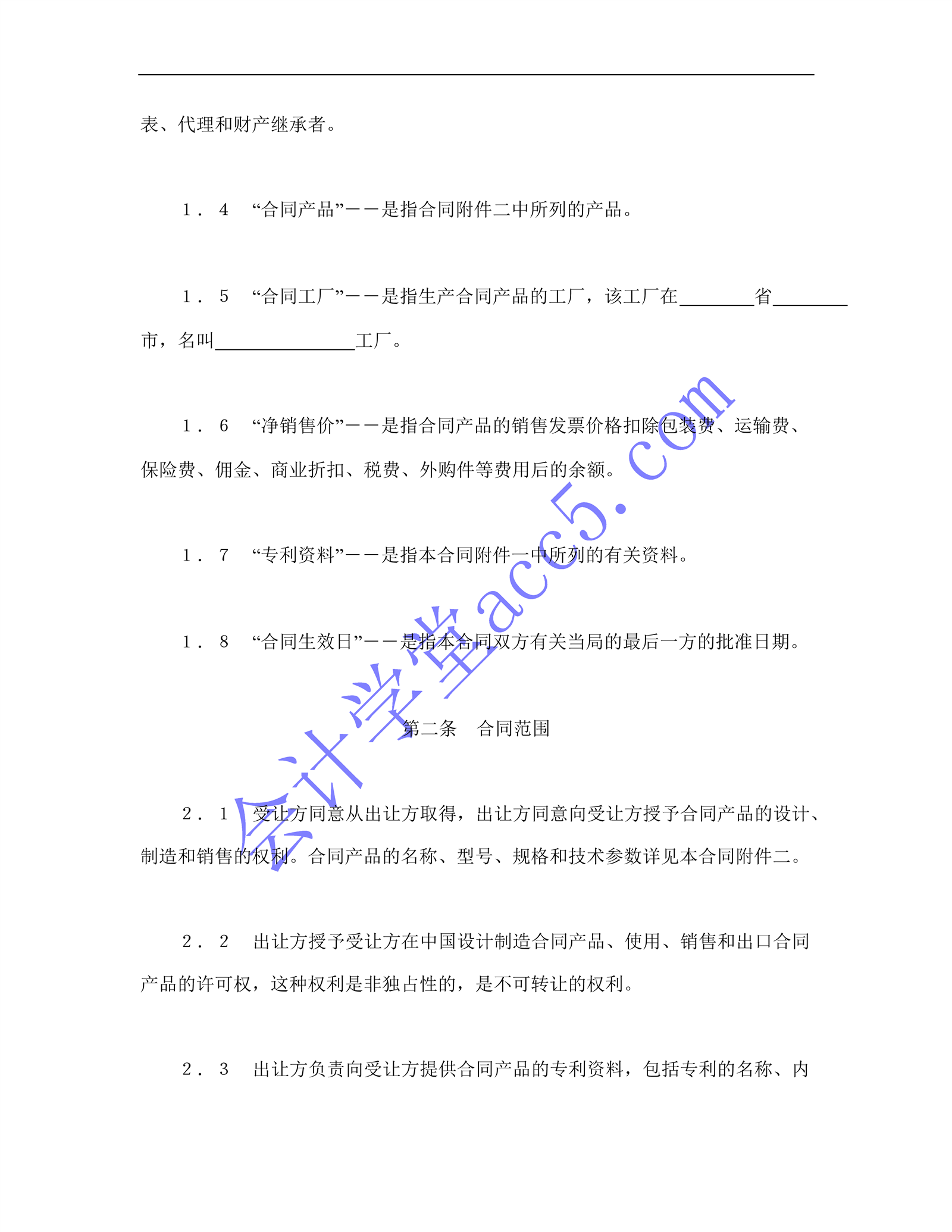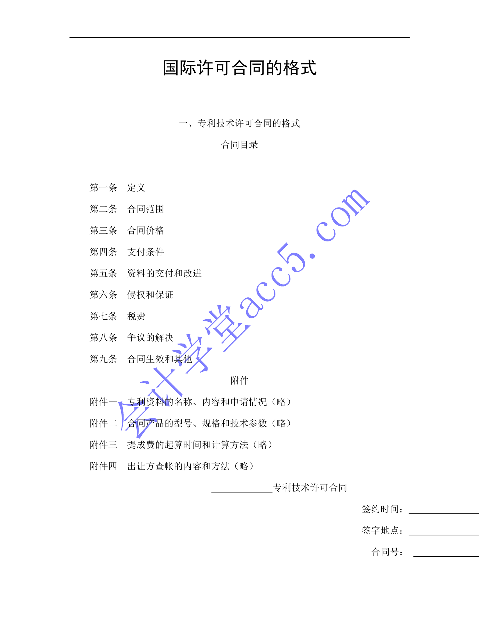 國(guó)際許可合同的格式介紹: