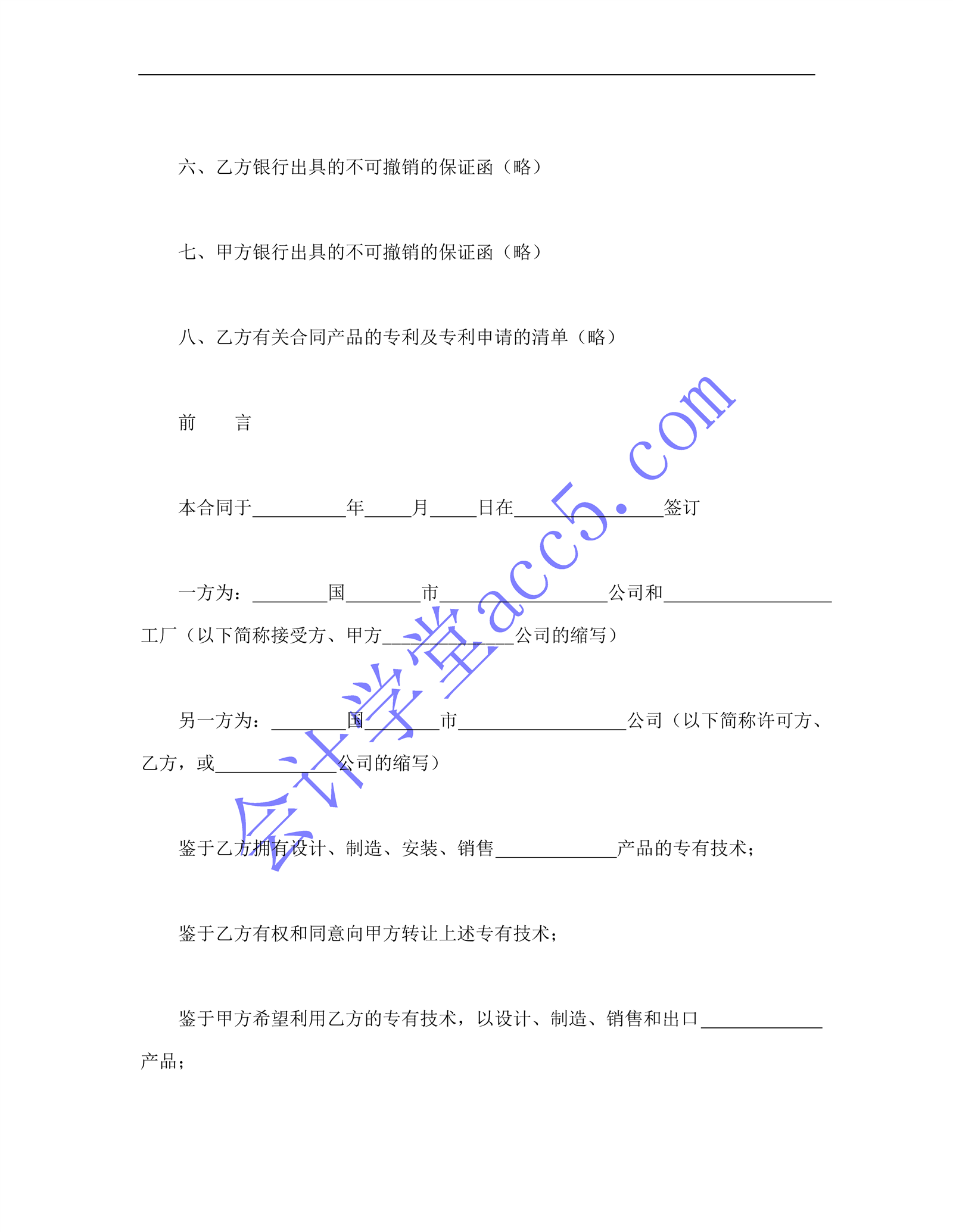 國際專有技術(shù)轉(zhuǎn)讓合同介紹: