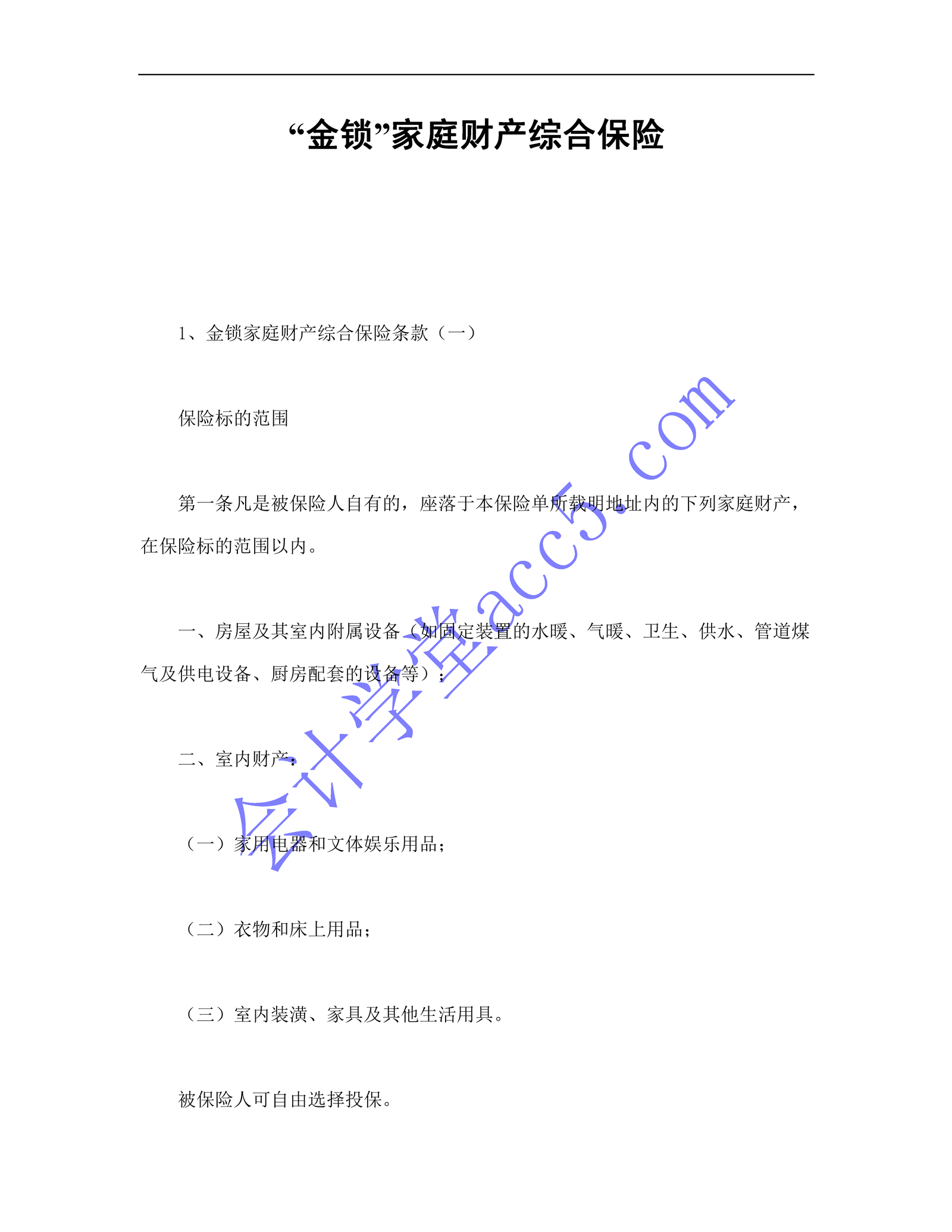 “金鎖”家庭財產綜合保險介紹: