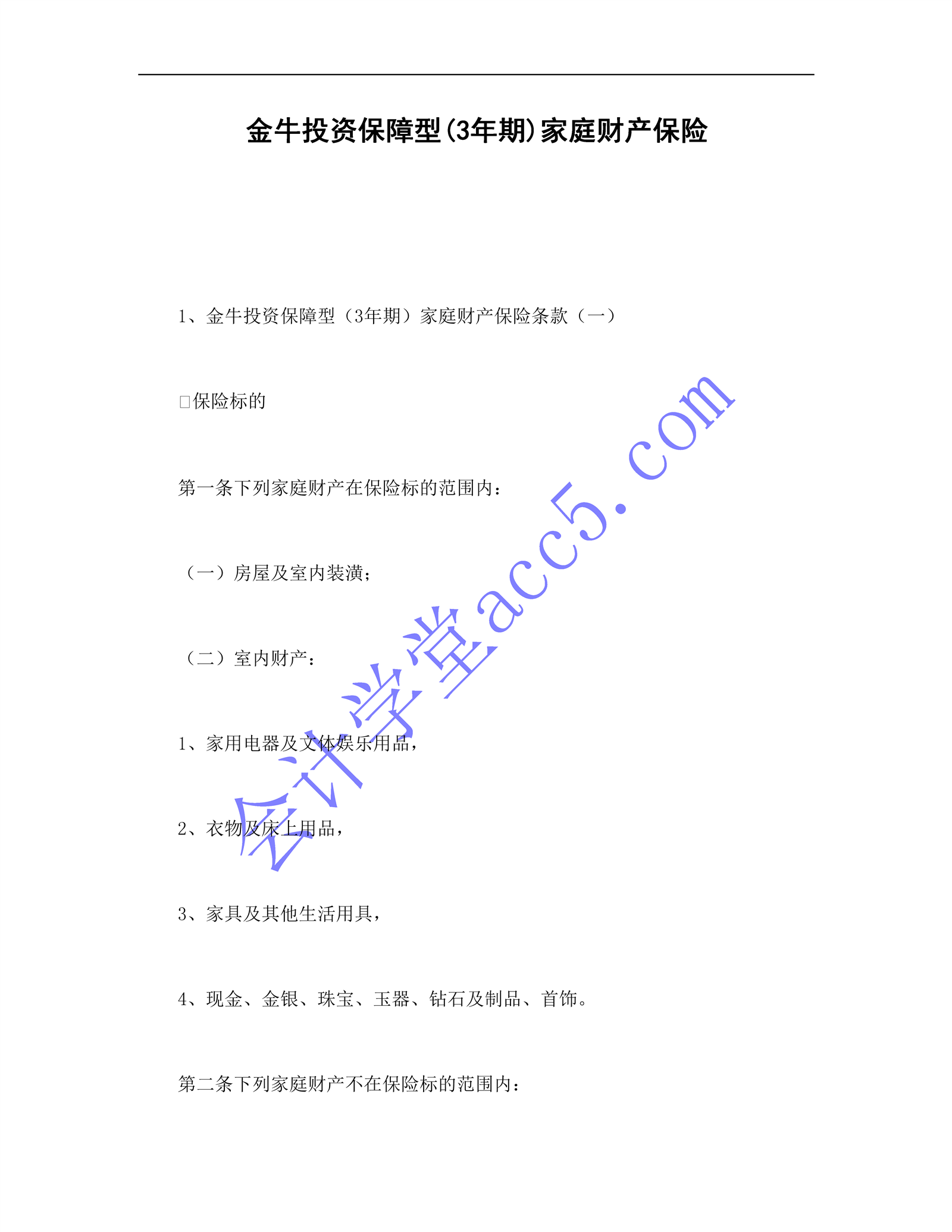 金牛投資保障型(3年期)家庭財產保險介紹: