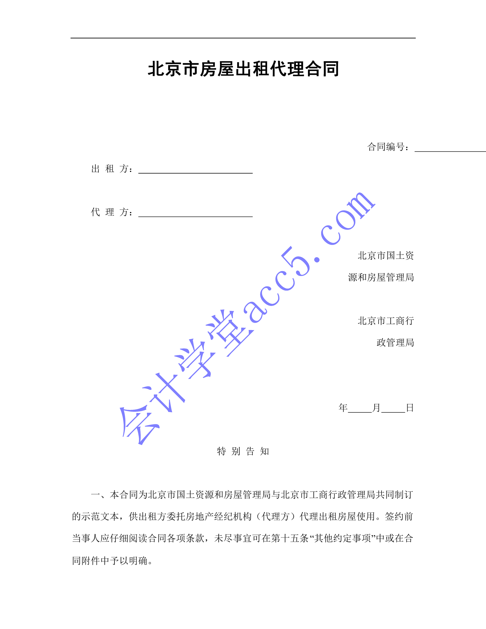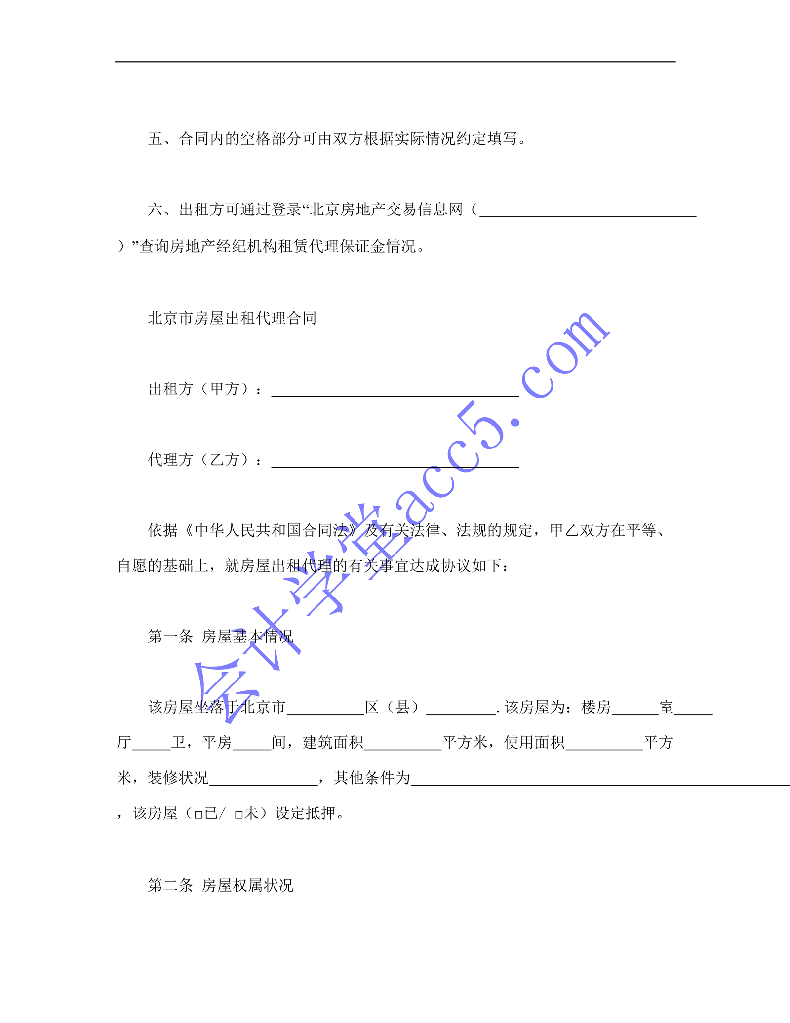 北京市房屋出租代理合同介紹: