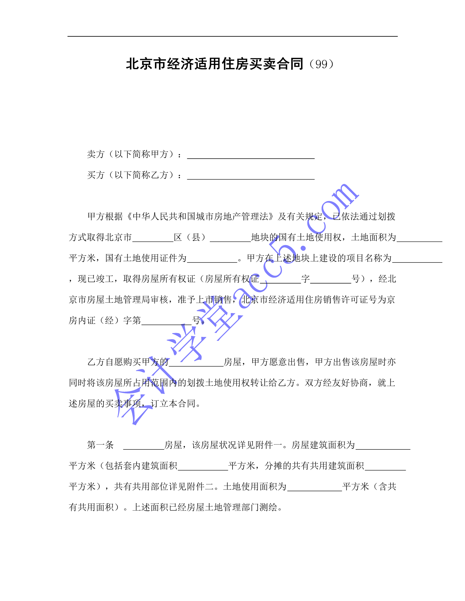 北京市經濟適用住房買賣合同(99)介紹: