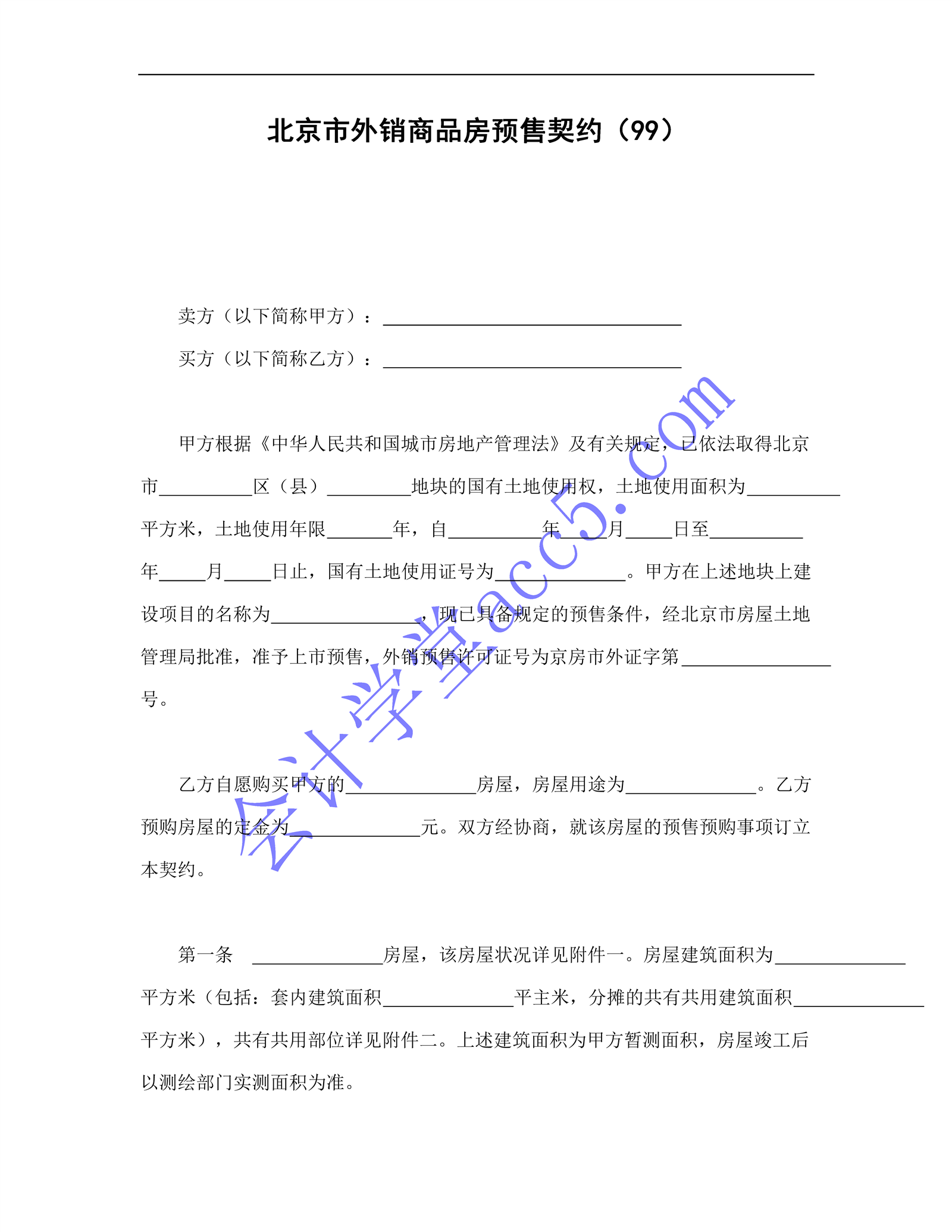 北京市外銷商品房預售契約(99)介紹: