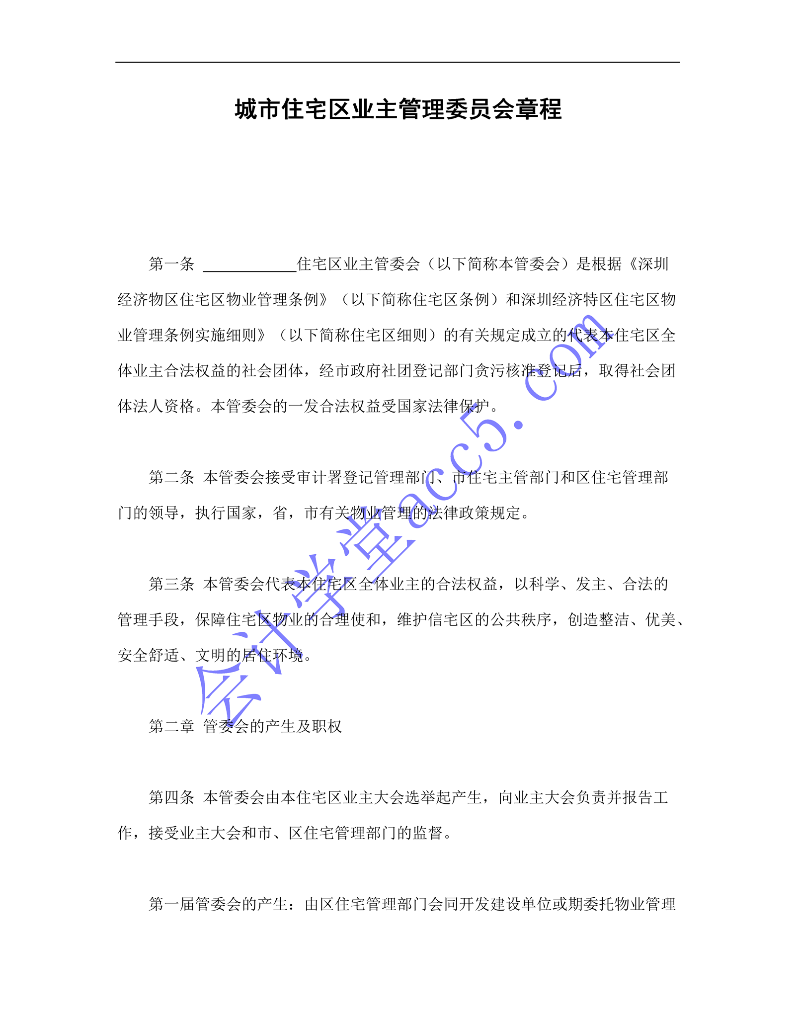 城市住宅區業主管理委員會章程介紹: