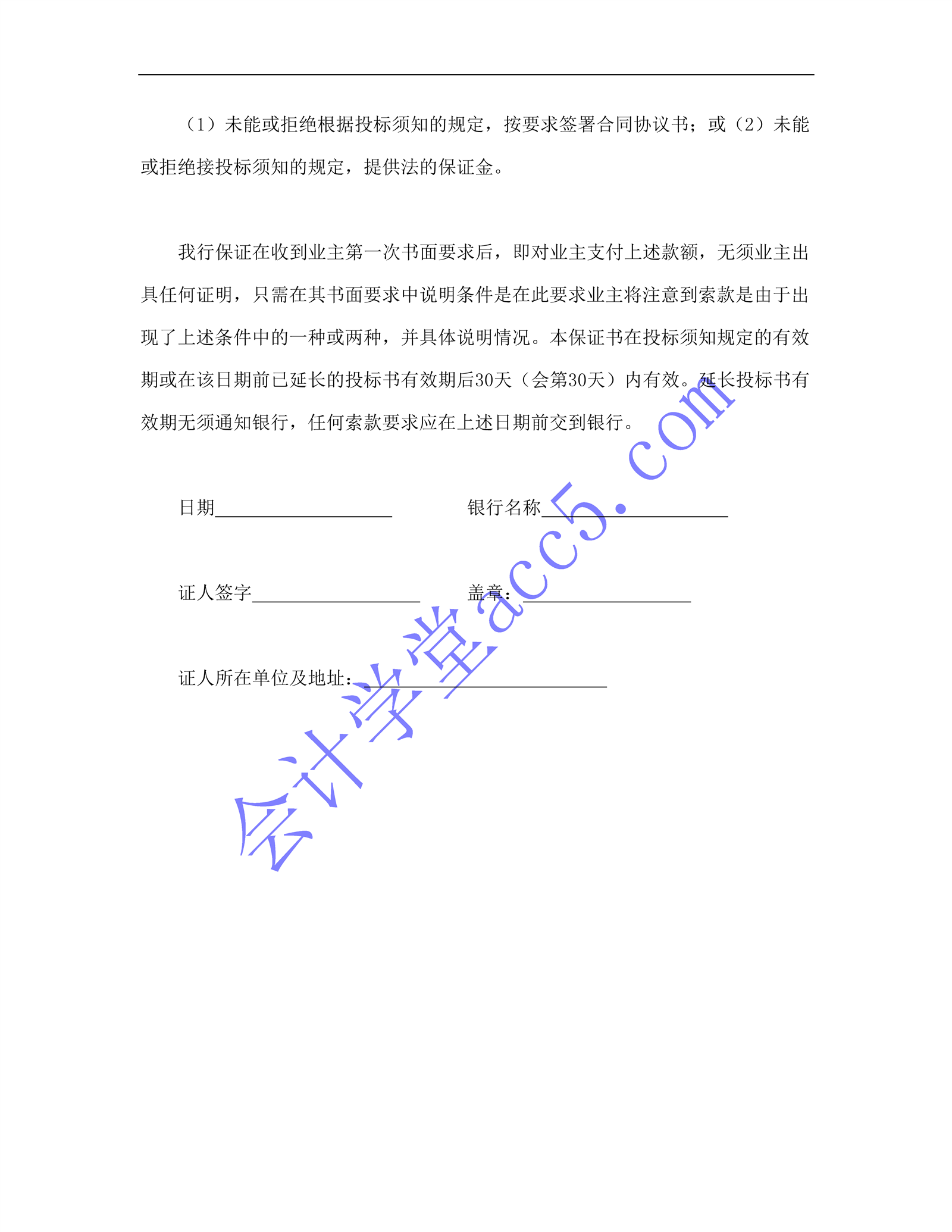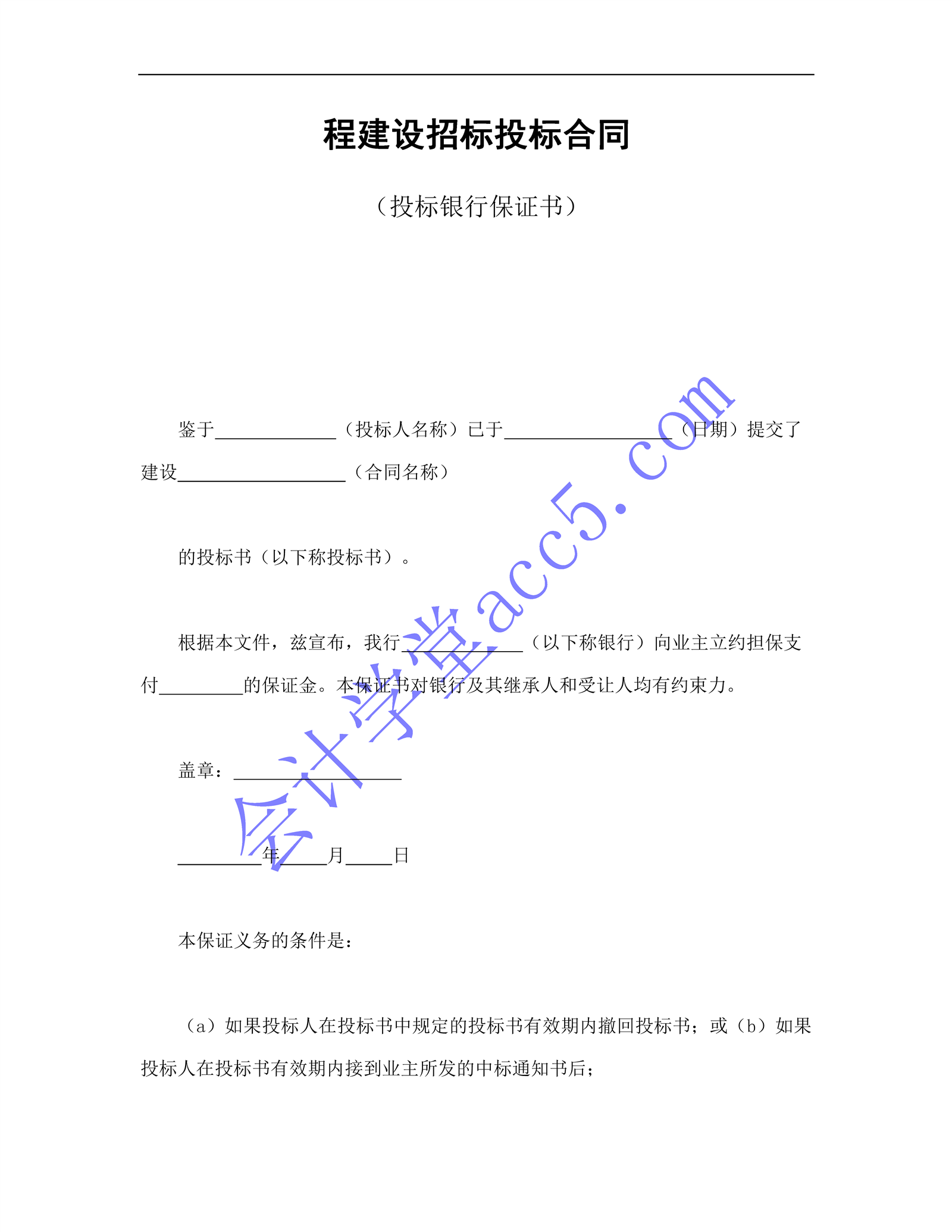 程建設招標投標合同(投標銀行保證書)介紹: