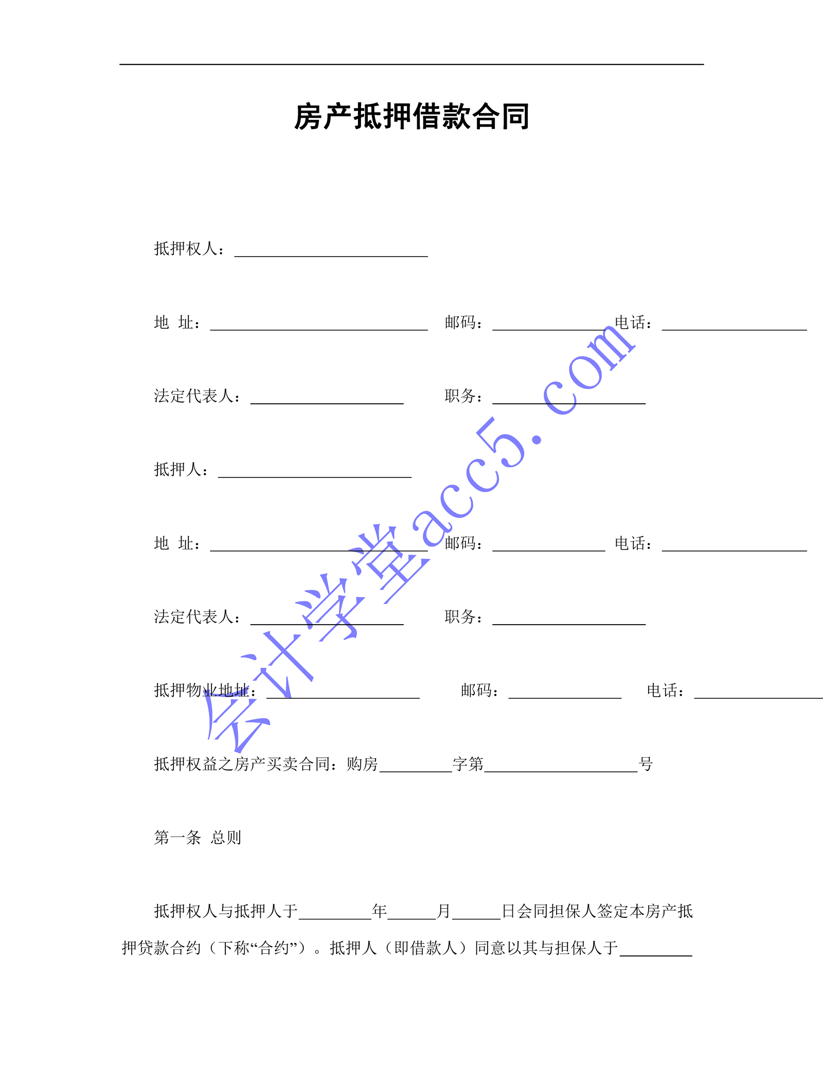 房產抵押借款合同介紹: