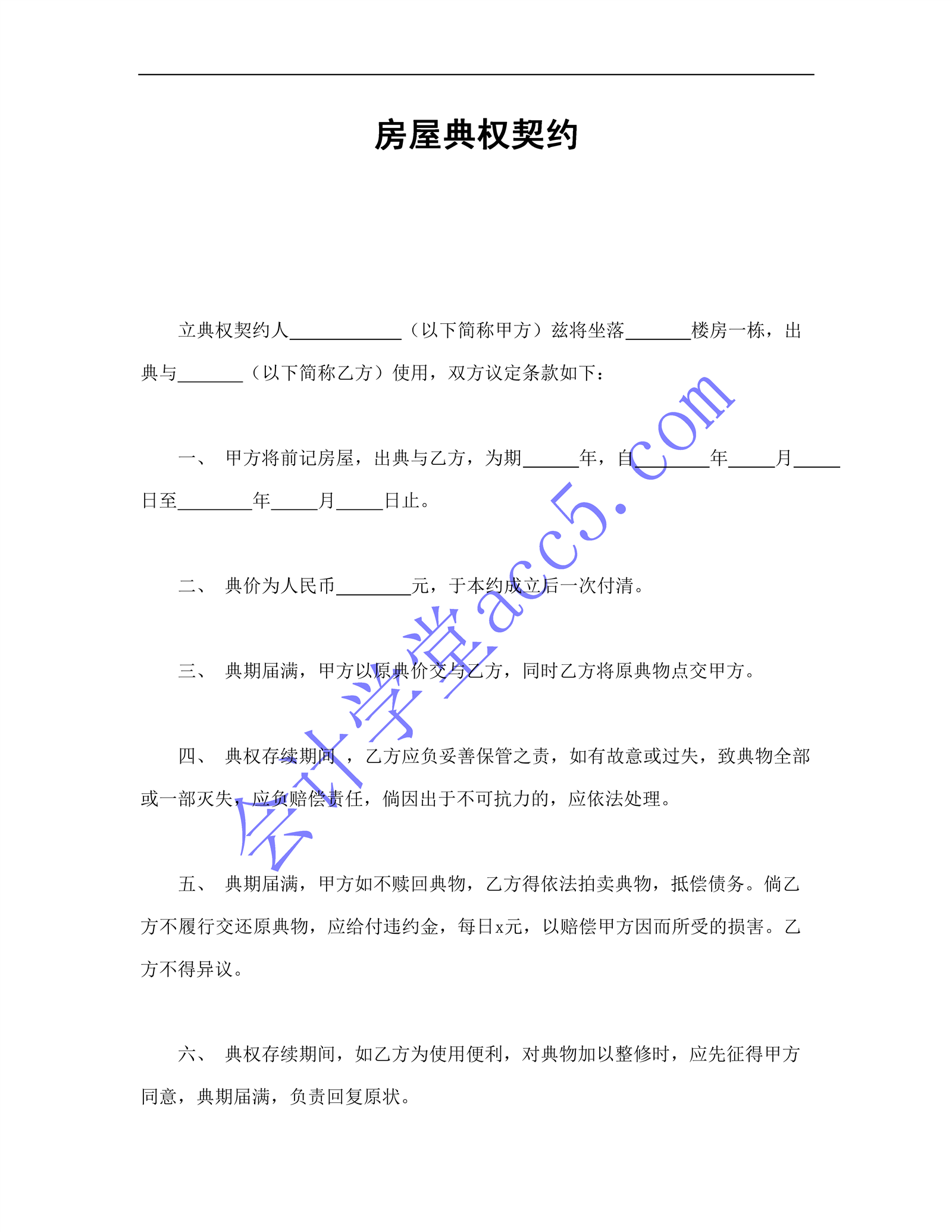 房屋典權契約介紹: