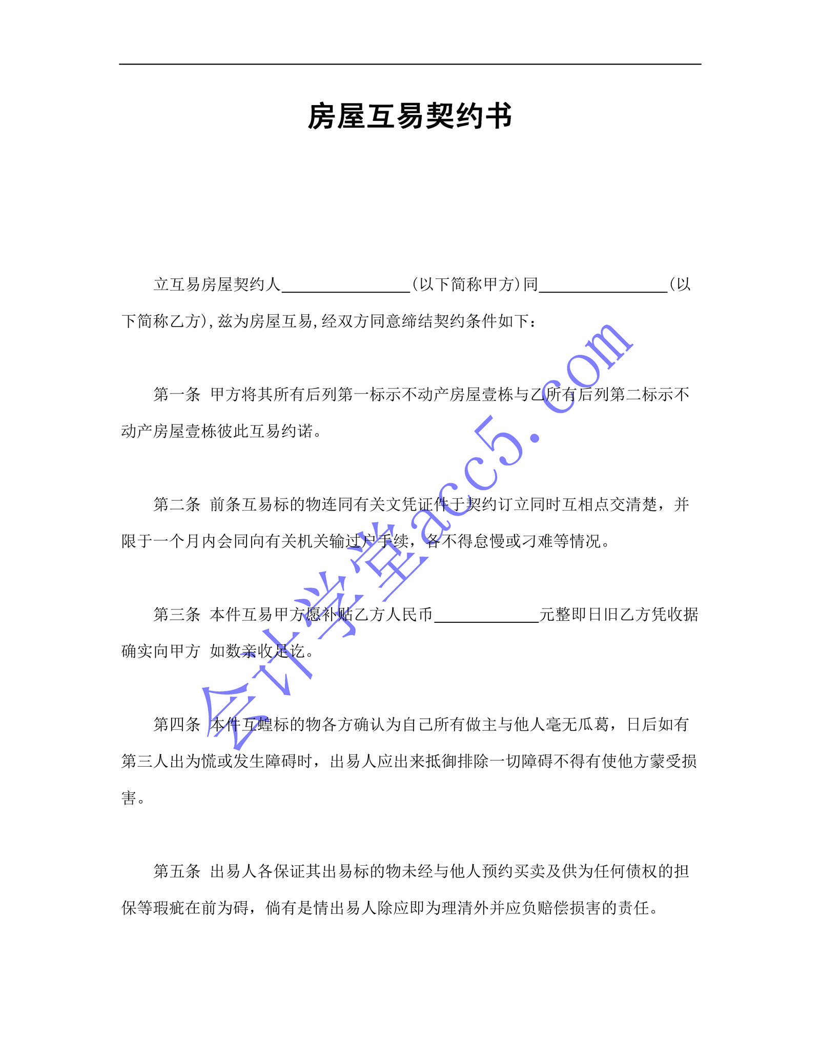 房屋互易契約書介紹: