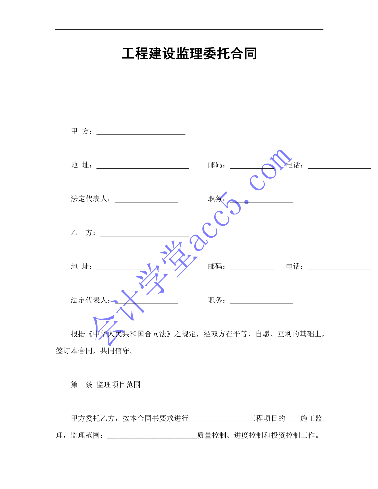 工程建設監理委托合同介紹: