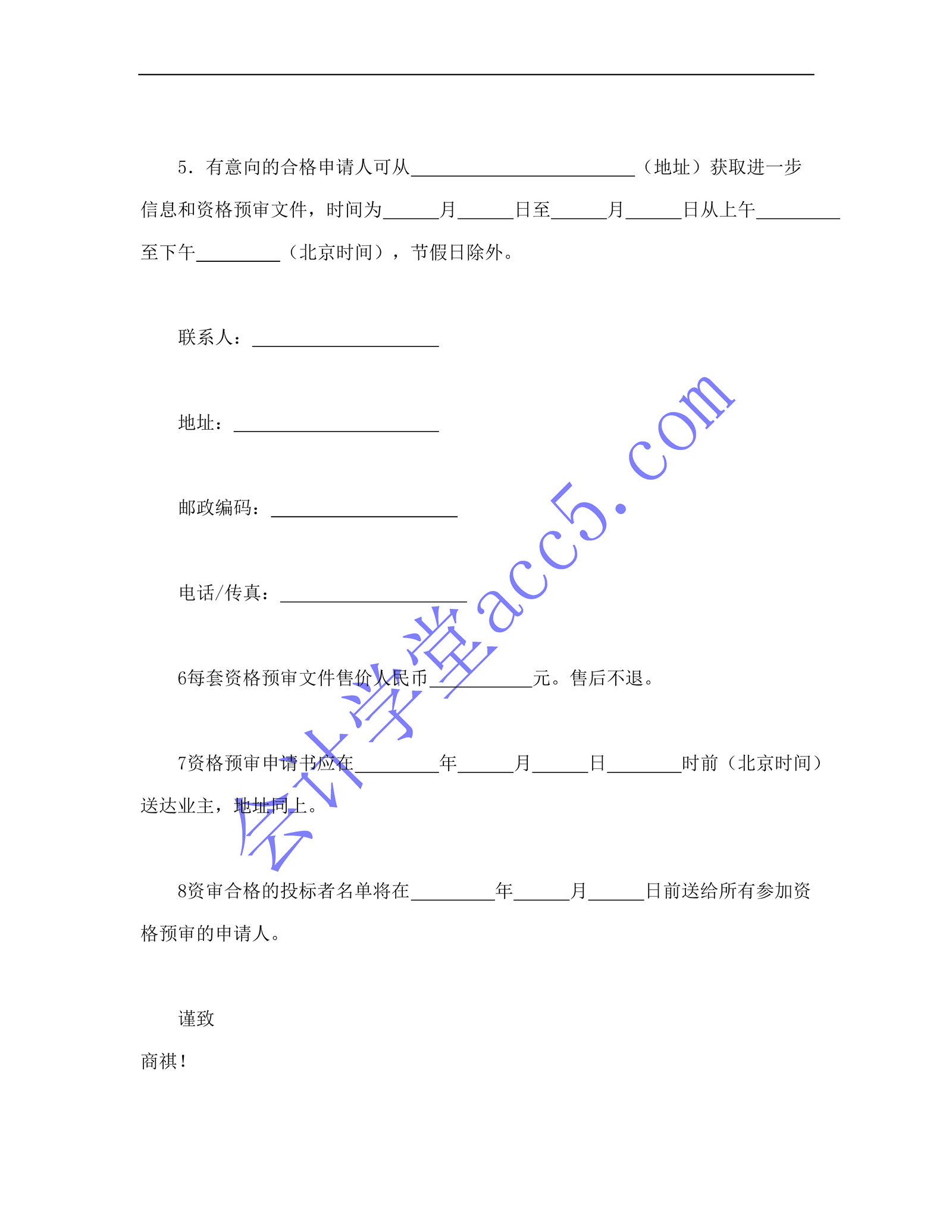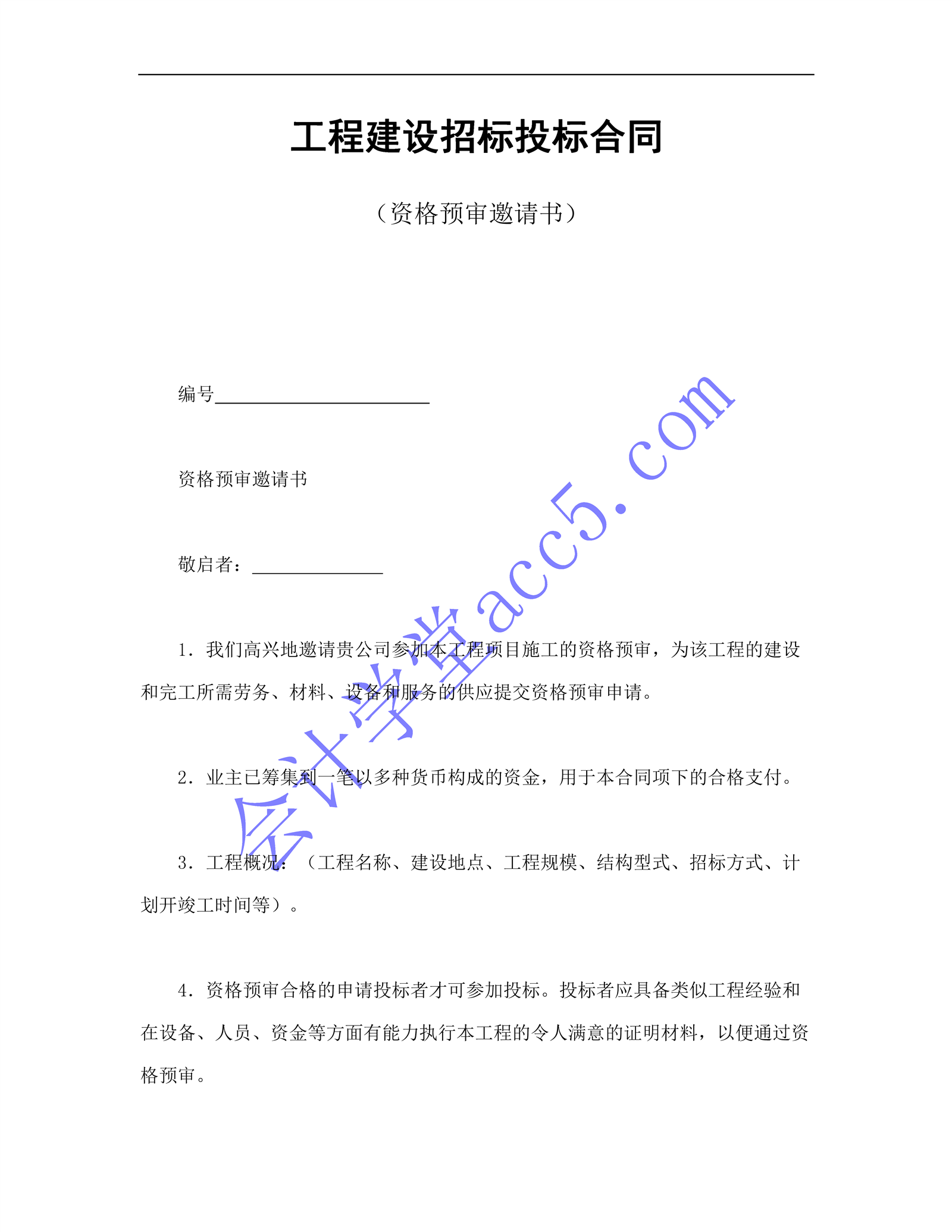 工程建設招標投標合同(資格預審邀請書)介紹: