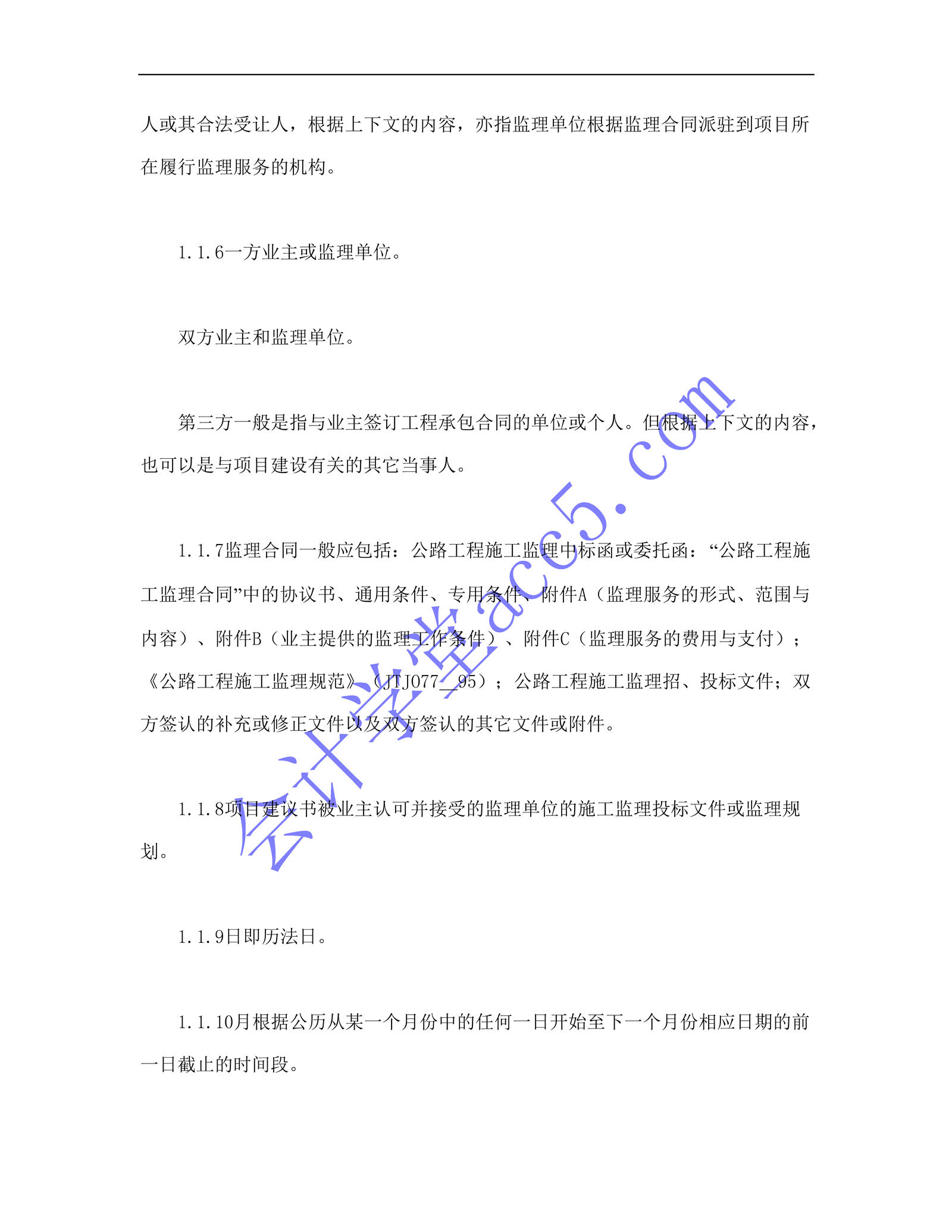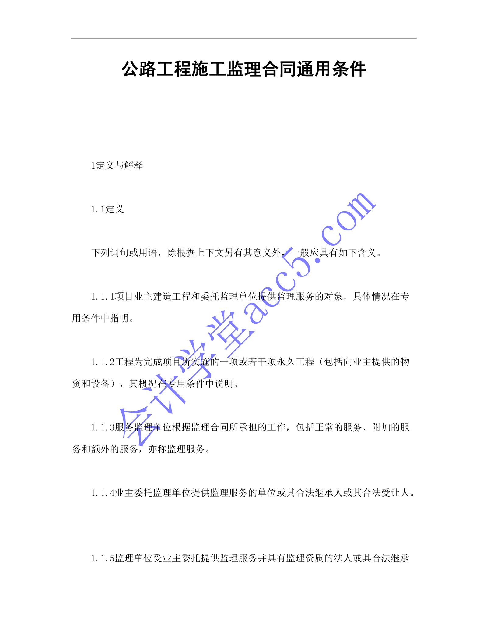 公路工程施工監理合同通用條件介紹: