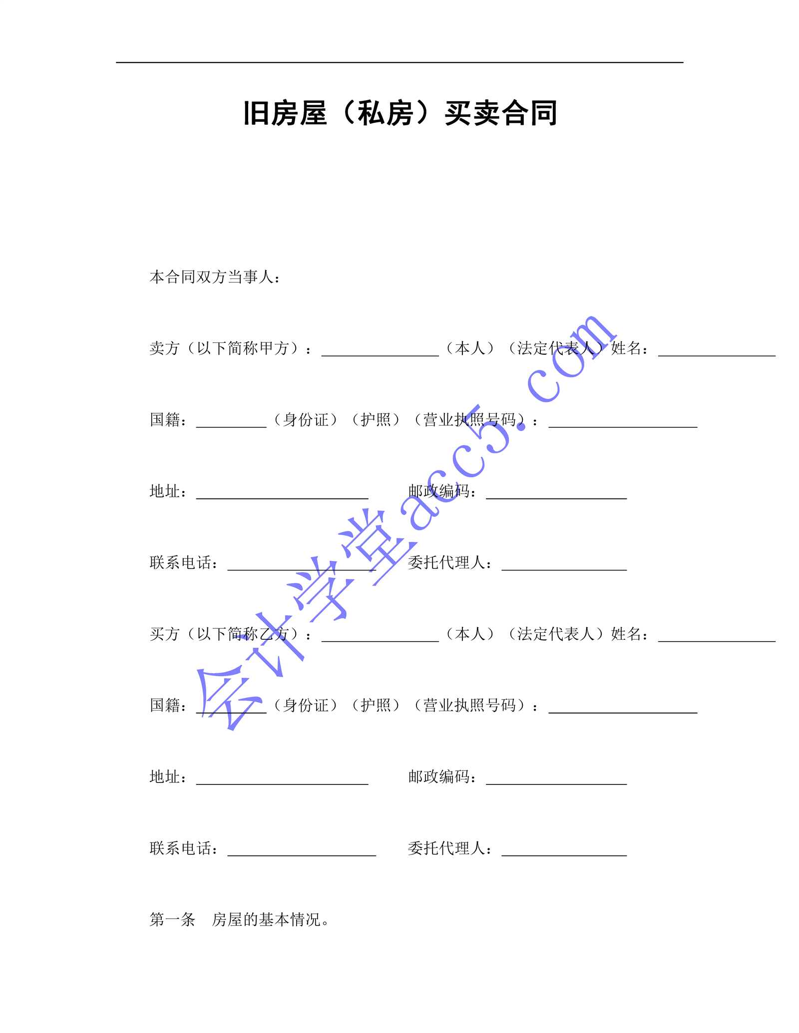 舊房屋(私房)買賣合同介紹: