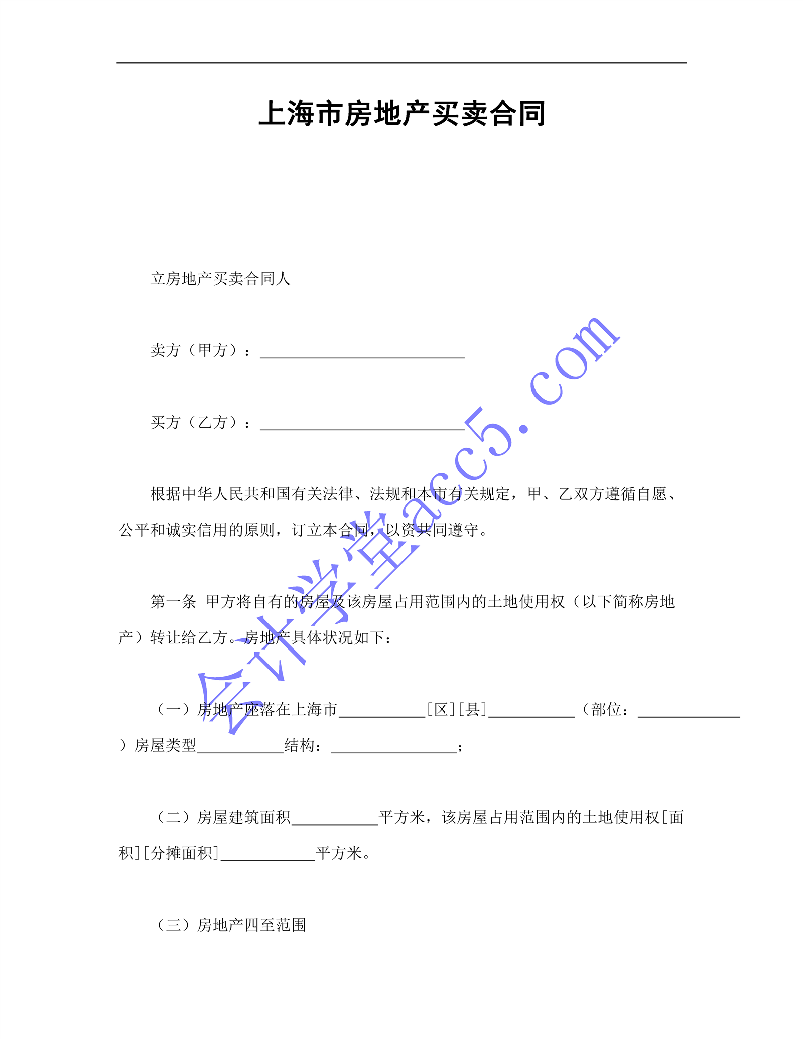 上海市房地產買賣合同介紹: