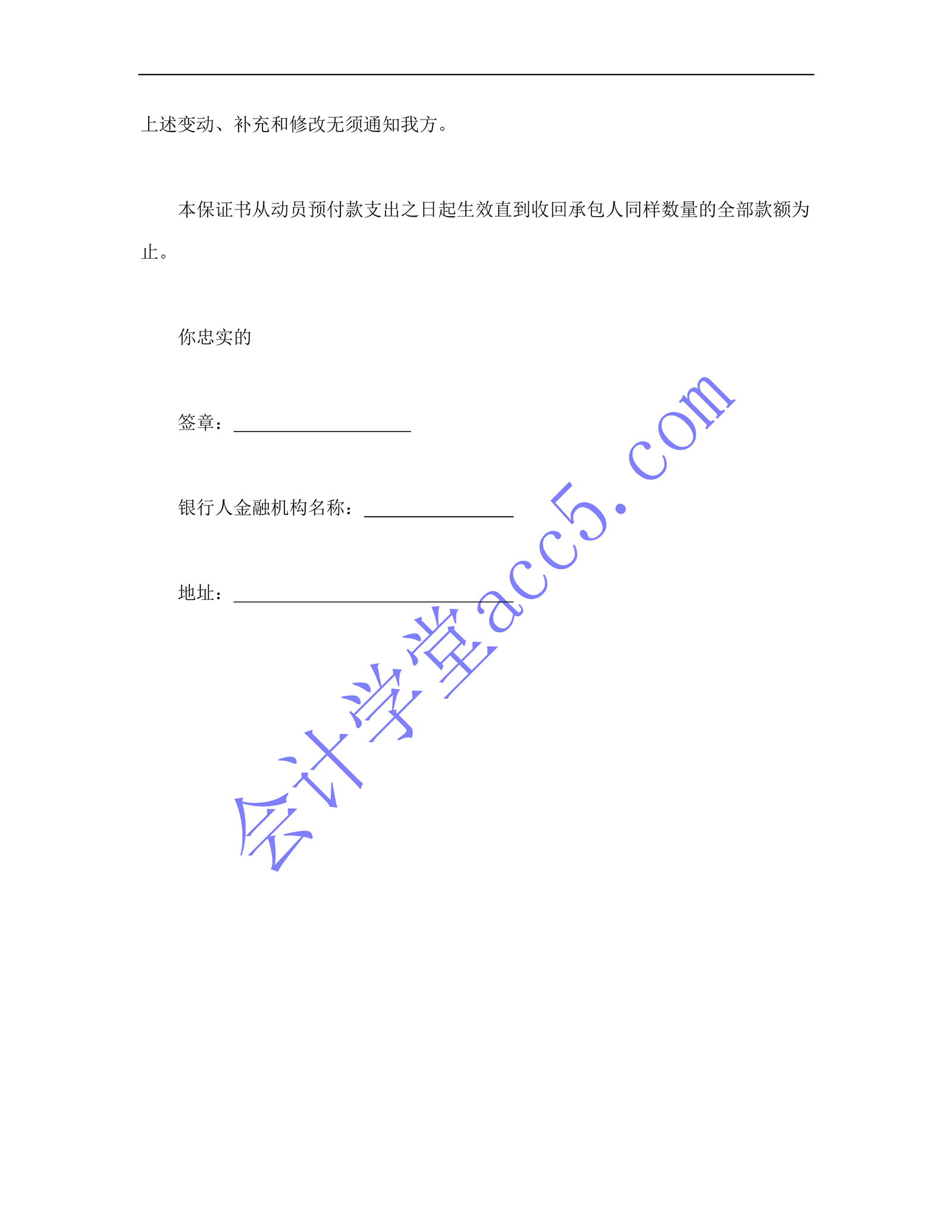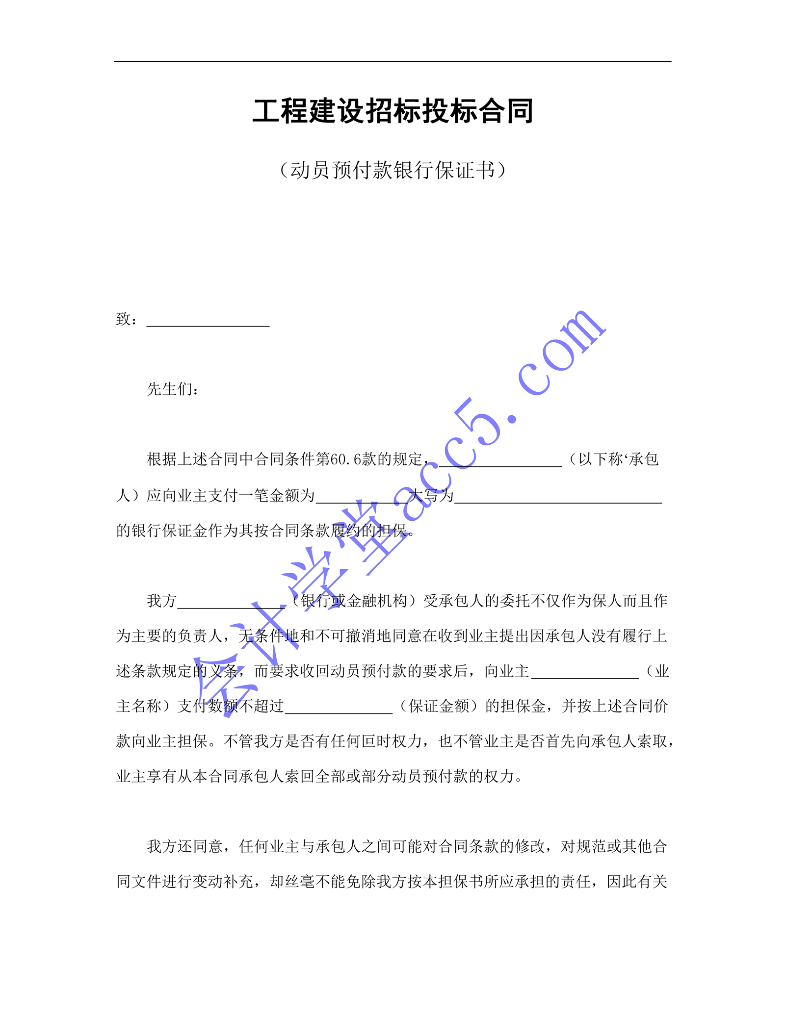 工程建設招標投標合同(動員預付款銀行保證書)介紹: