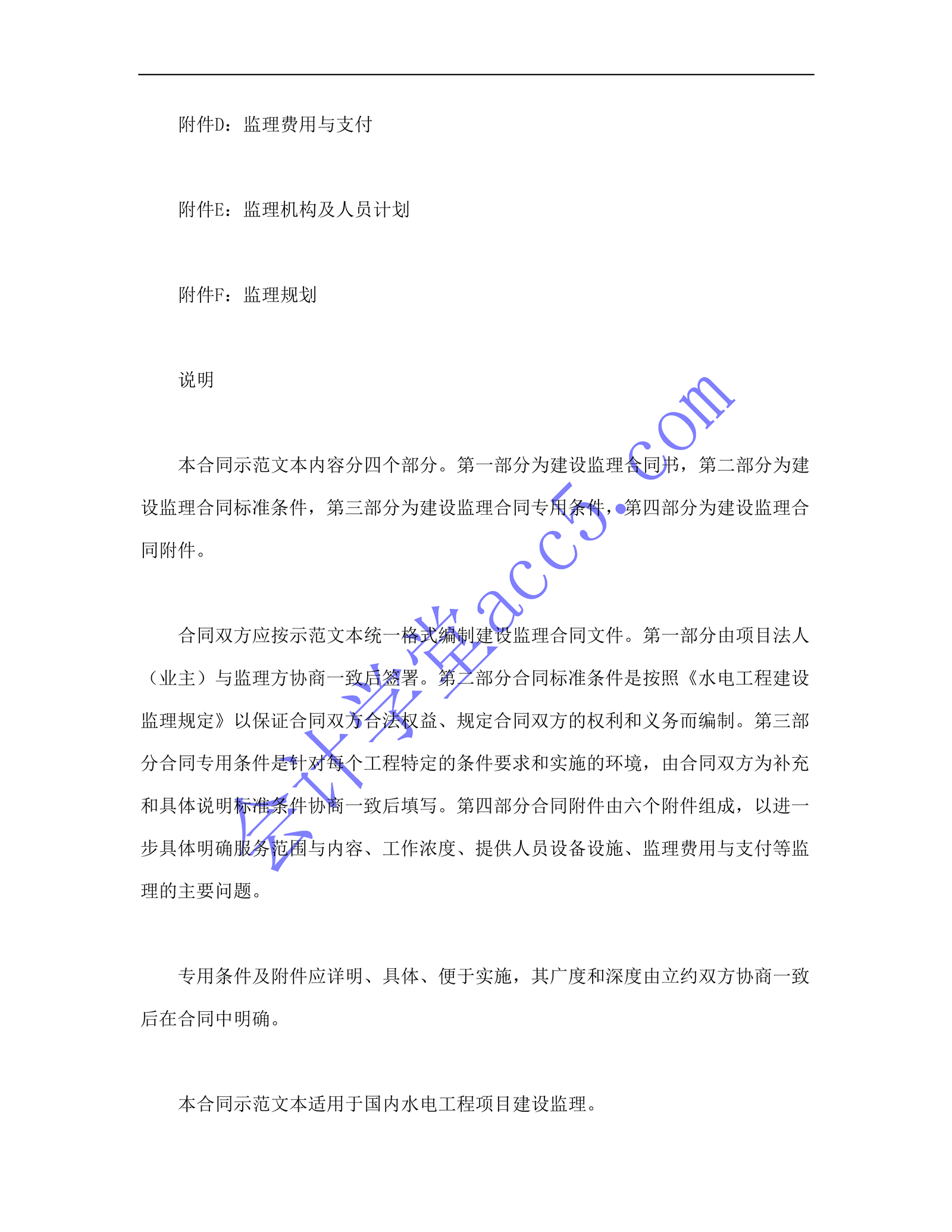 水電工程建設監理合同(示范文本1997年版)介紹: